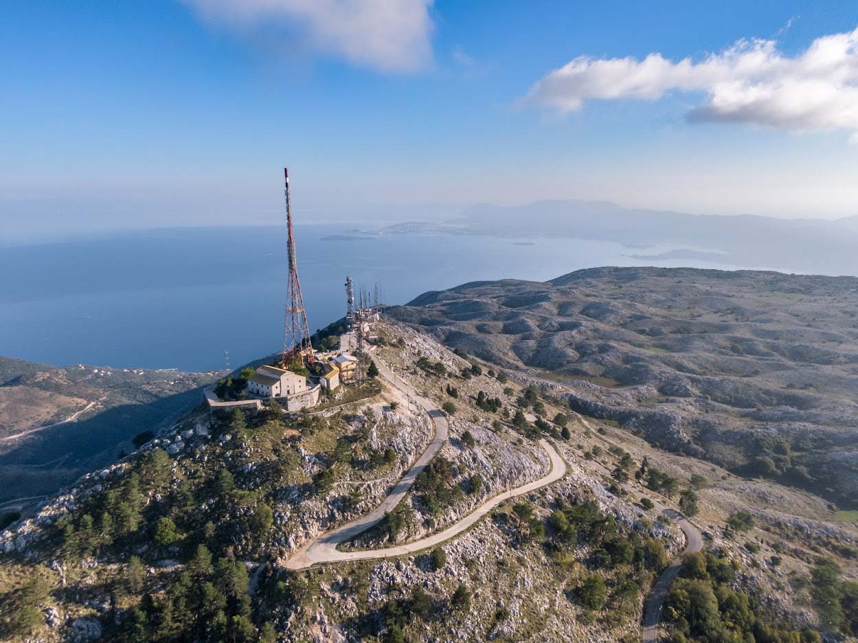 A sziget első kolostora 1347-ben épült, de Korfu viharos történelme során 1537-ben porig rombolták. A romok helyén 1689 körül épült az új kolostor, melyet Jézus színeváltozása tiszteletére emeltek. A Pantokrator csúcsára szerpentines autóutakon felvezetve, vagy gyalog is eljuthatunk. Gyalogtúra kiindulópontjának a legmegfelelőbb hely Old Perithia, egész Korfu legrégibb faluja. Innen körülbelül kétórás gyaloglás a csúcs.
